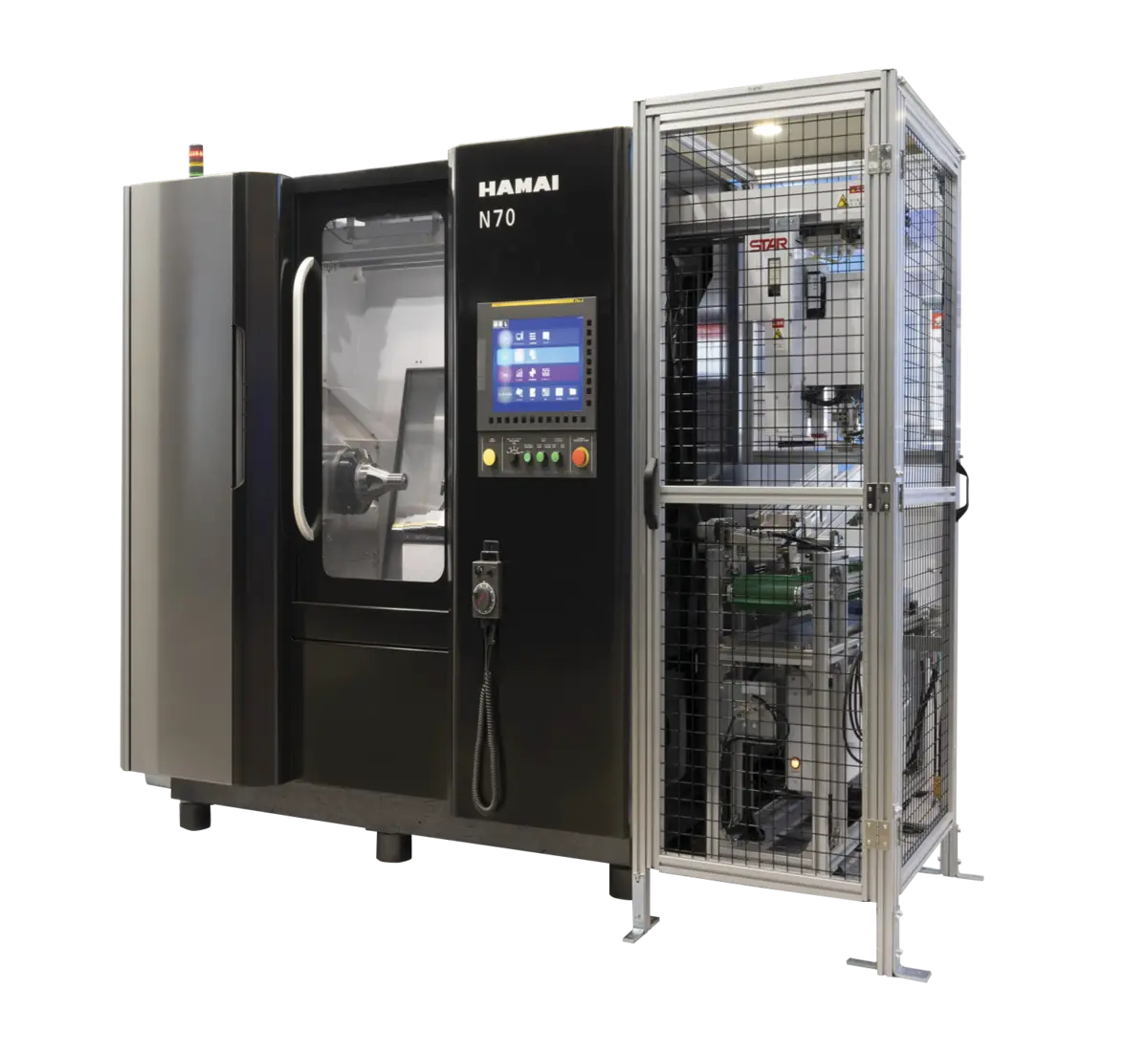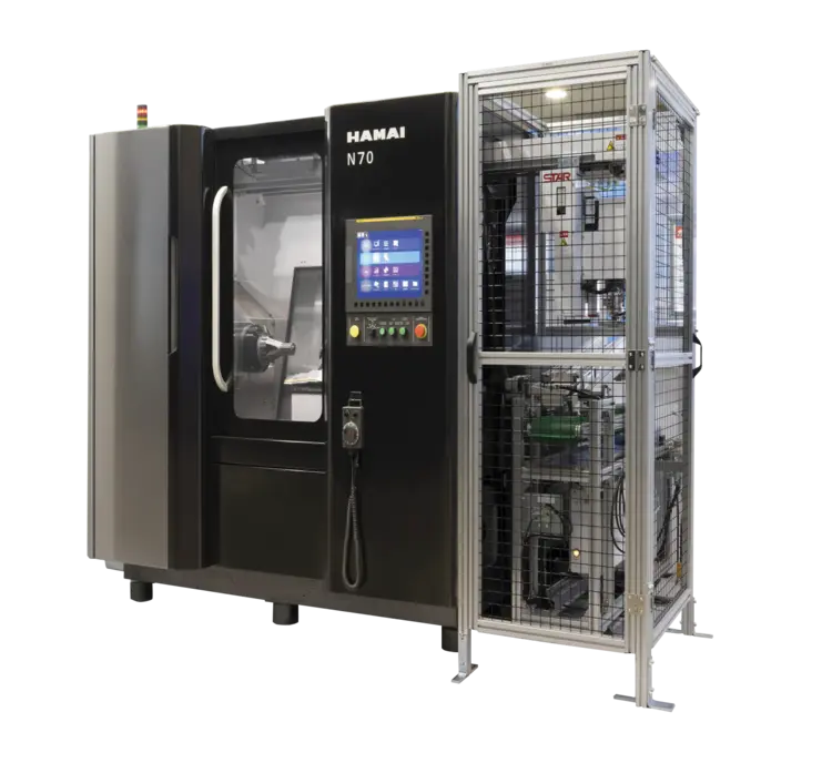 First produced in 2023, the Hamai N70 design is effectively a clean sheet of paper to address longer and larger workpieces as well as incorporating automation into the base and still maintaining a compact footprint. To that end the N70 incorporates a 15 Degree Slant-Type hob head design to facilitate chip disposal and more flexible automation in one stroke.